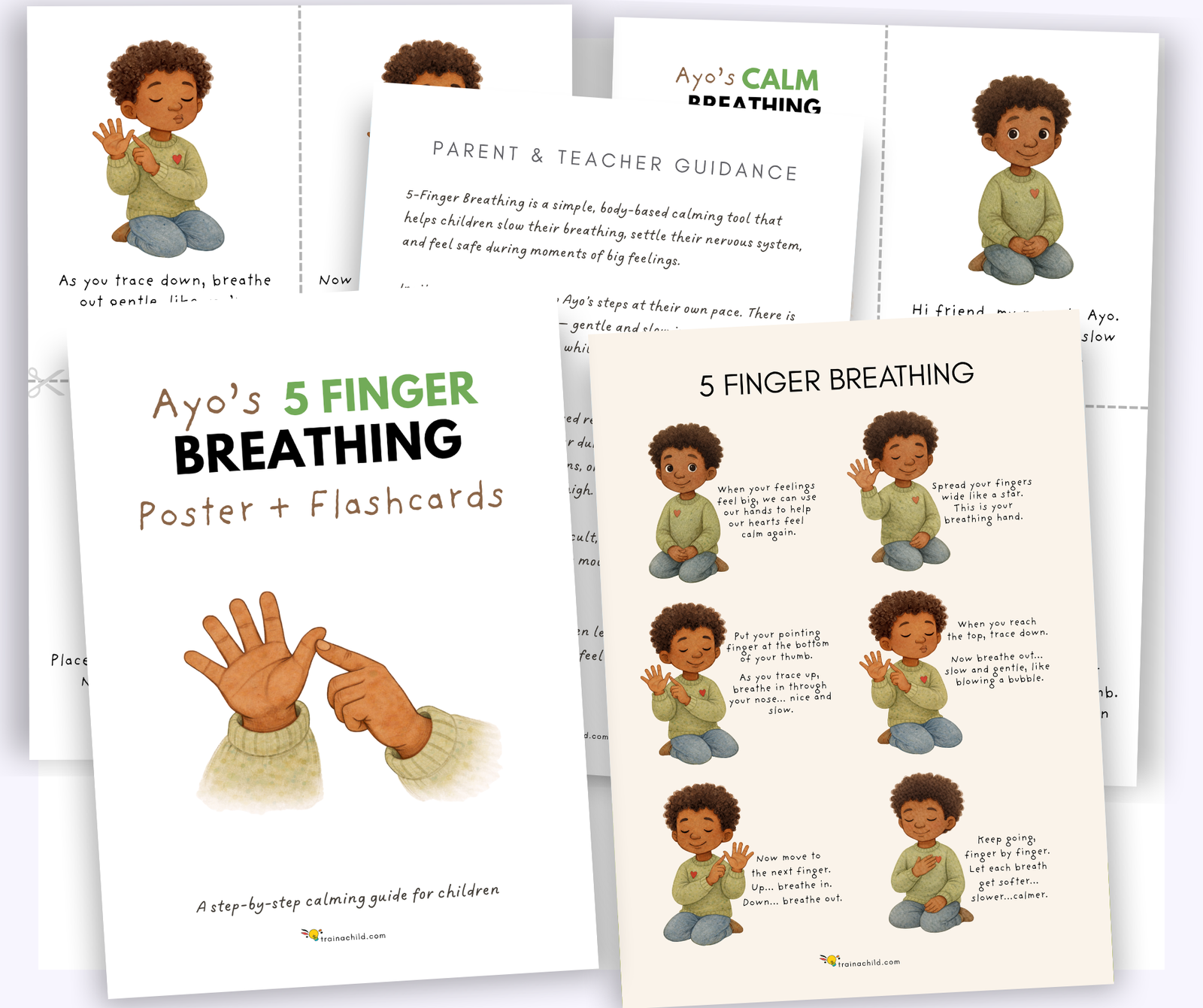 Big feelings can show up anywhere — at home, in the classroom, before bed, or during transitions. Ayo’s 5-Finger Breathing Poster is a gentle, child-friendly visual tool designed to help children slow down, regulate their breathing, and feel calm and safe in their bodies.