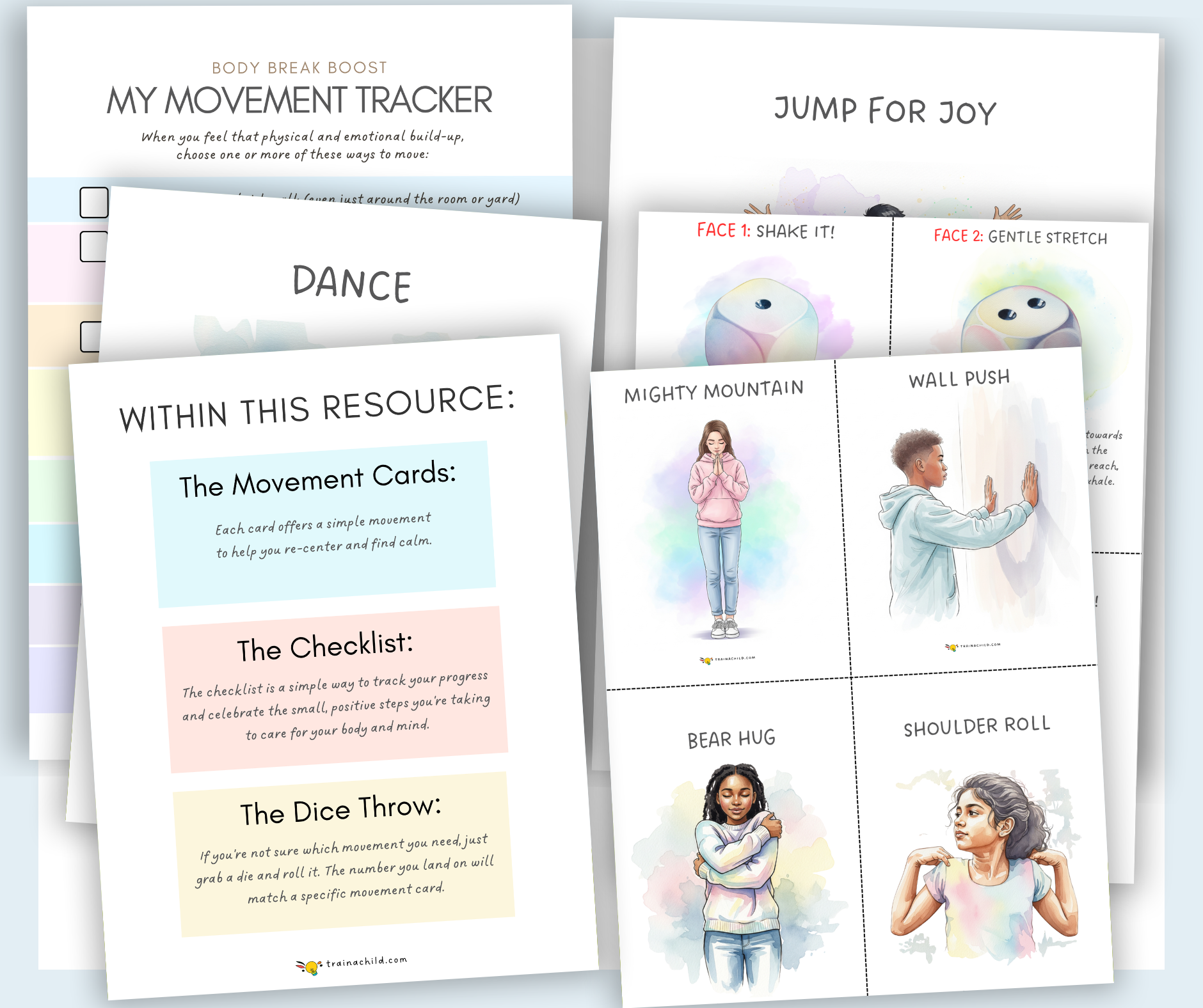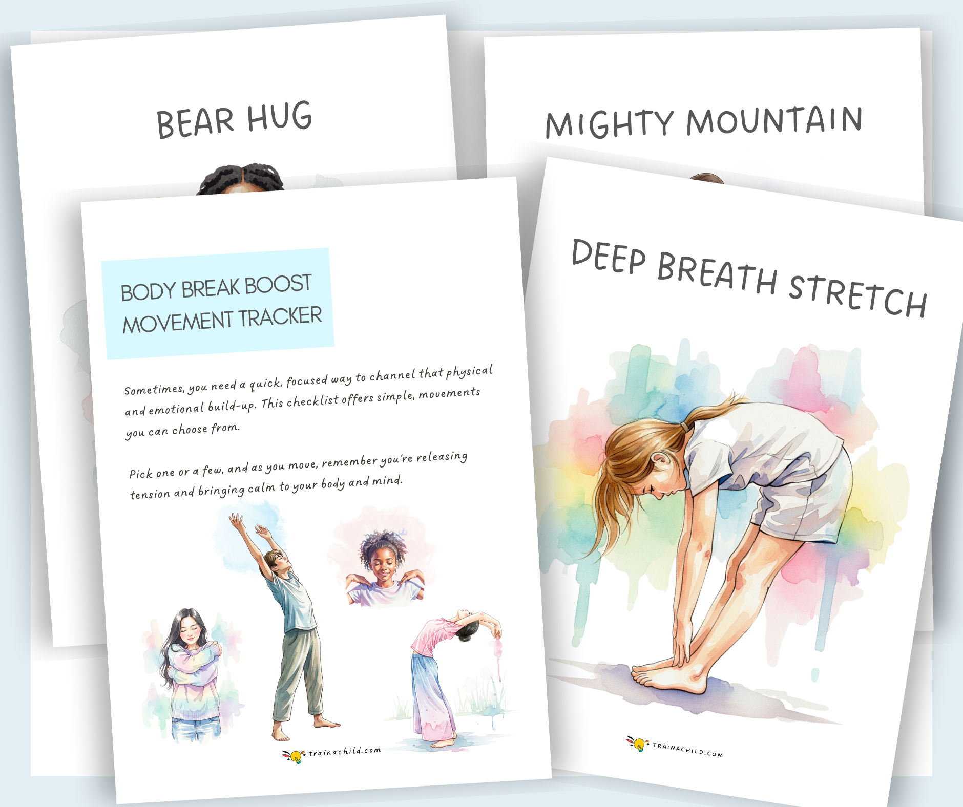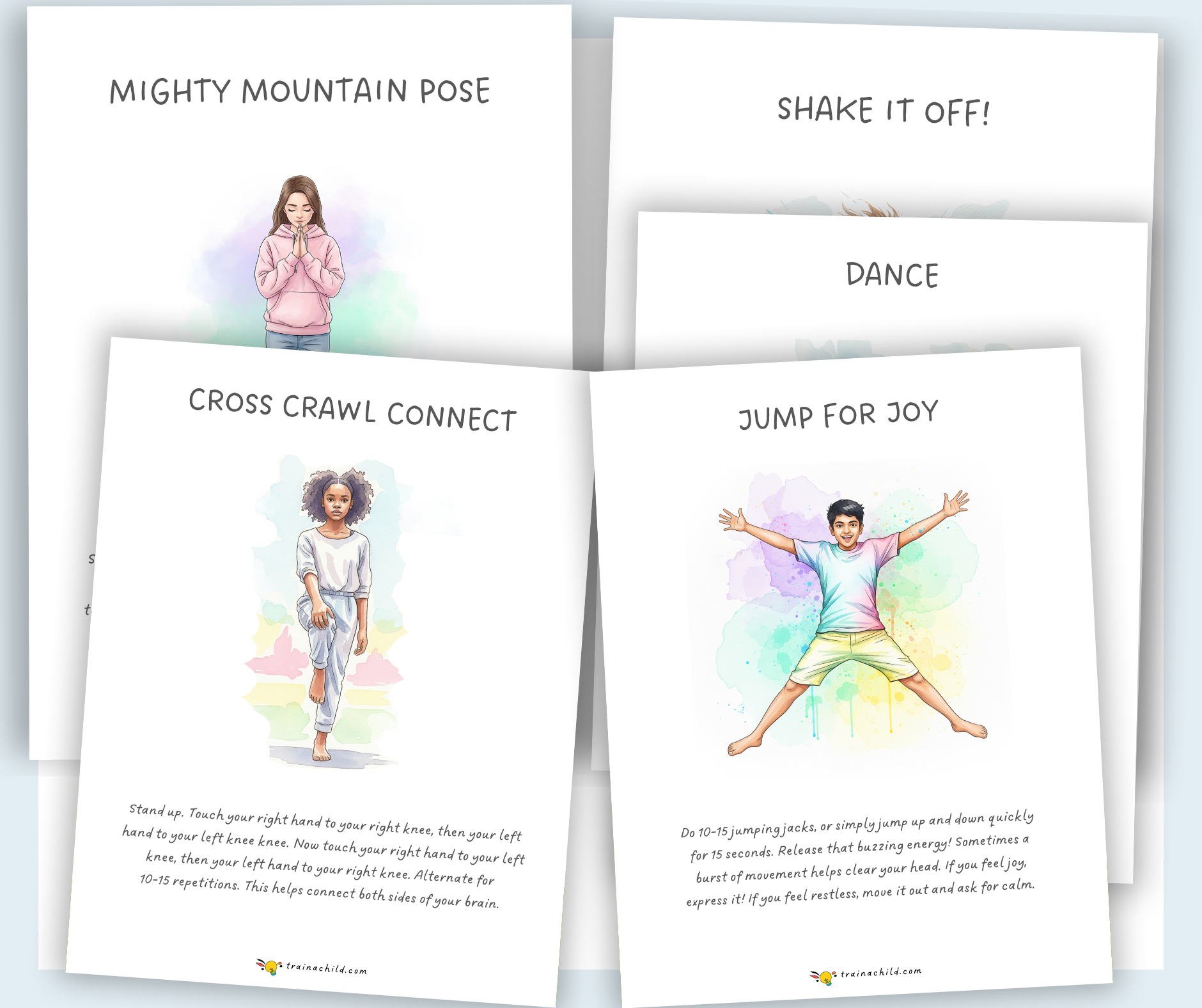 For moments when emotions are high and attention is low, this resource includes simplified movement cards featuring: